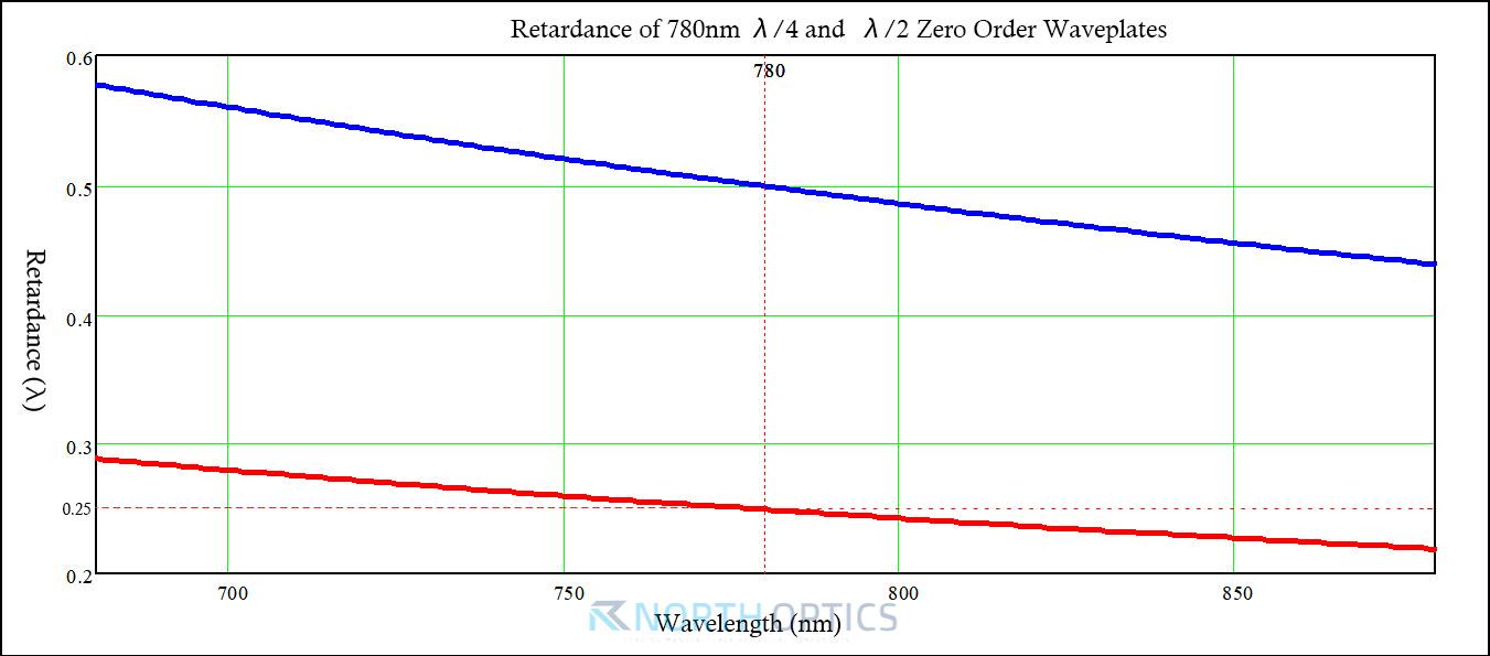 The following graphs illustrate the retardation of Zero Order Waveplates over the wavelength ranges